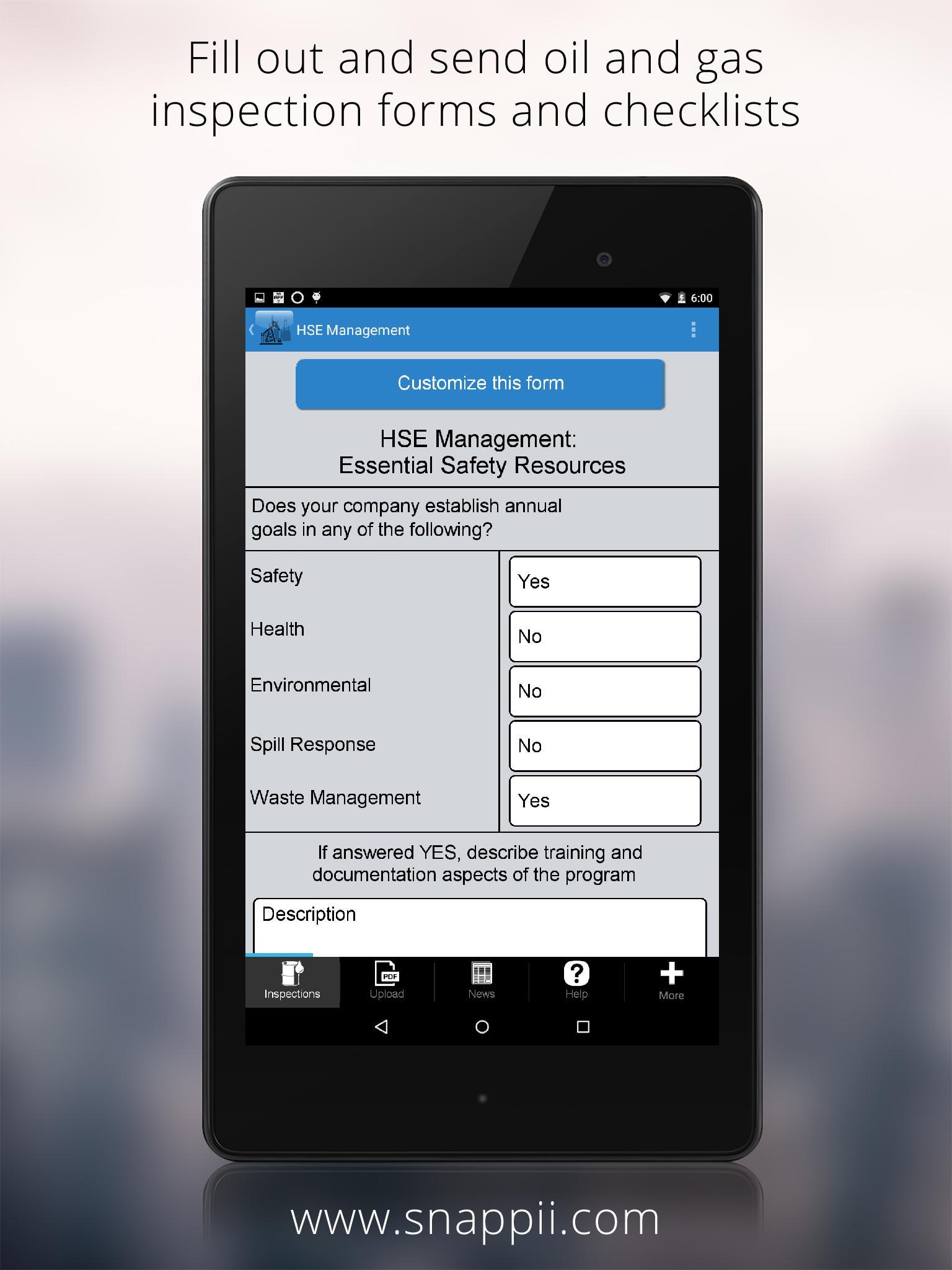Great for conducting oil & gas safety inspections using mobile devices